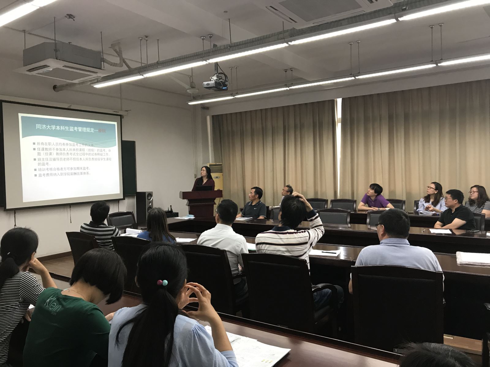 为进一步做好“立德树人”的人才培养目标,营造良好的教学秩序,推进考试管理改革,强化教风、学风、考风建设,客观、公正、公平评价教学效果,6月15日上午,我院在嘉定校区济事楼417会议室,举办了永利23411集团本科生监考管理规定学习培训会议。学院全体教职工参加了培训会。