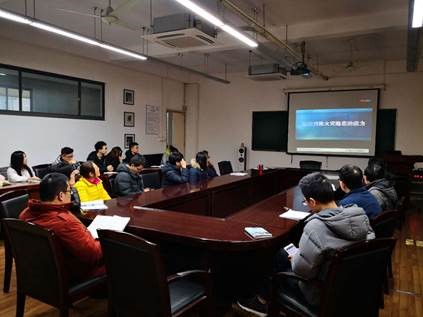 宋书记传达了学校2017年安全稳定工作会议精神,要求全体师生落实十九大报告精神:“要树立安全发展理念,弘扬生命至上、安全第一的思想,健全公共安全体系,完善安全生产责任制,坚决遏制重特大安全事故,提升防灾减灾救灾能力。”结合软件学院工作实际,宋书记对学院安全生产工作提出具体要求:一、要在思想上高度重视安全生产工作,充分认识安全稳定的严峻形势,要用“心”做好安全稳定工作,要用“钉钉子”精神抓安全稳定工作。二、要做到安全责任人全覆盖。安全责任人按照签约承诺履行安全工作职责,强化守土尽责,真正把安全责任“放在心上,扛在肩上,抓在手上”。健全完善安全检查台账制度,做到每周一小查,每月一大查。要三、各室在放假前再开展一次安全自查,重点查找本室在安全方面的薄弱环节,做到提前预防,彻底杜绝安全隐患。学院也将邀请有关专家,查找学院安全存在的薄弱地方,学院将进行针对性的整改。