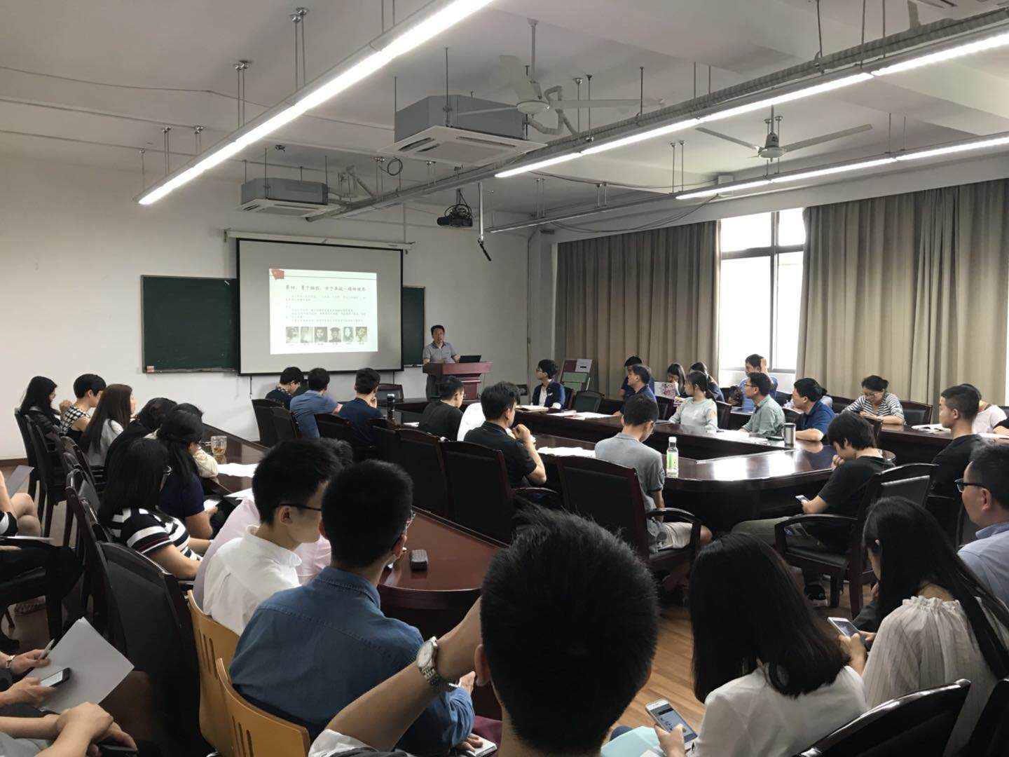 2018年5月29日下午,为深化“两学一做”学习教育,弘扬井冈山精神,进一步推动学院“双一流”建设,学院党委书记宋庆国同志在嘉定校区济事楼417会议室,以“传承井冈山精神,建设双一流学院”为题,为全院师生党员上了一堂生动的党课。