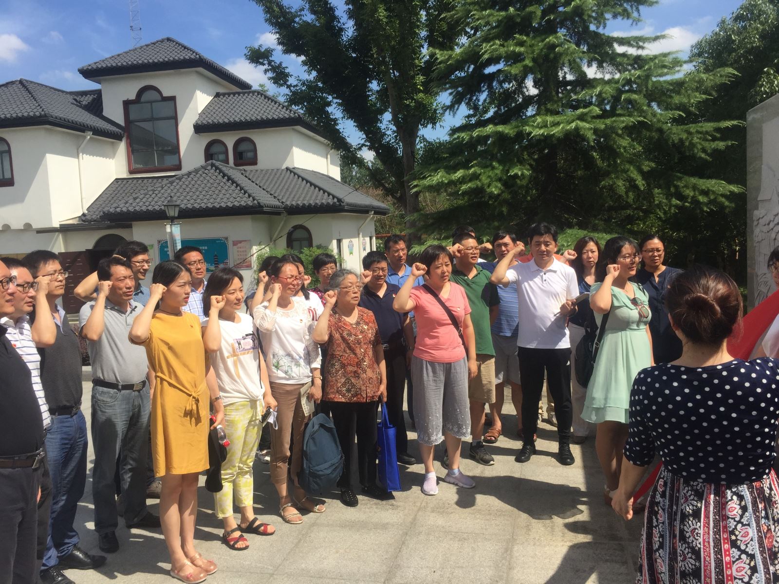 为庆祝建党97周年,进一步推进“不忘初心、牢记使命,贯彻落实党的十九大精神”学习实践活动深入开展,软件学院教工党员7月10日在党委书记宋庆国的带领下,来到红色基地——嘉定外冈游击队纪念馆进行了革命传统爱国主义教育参观学习。