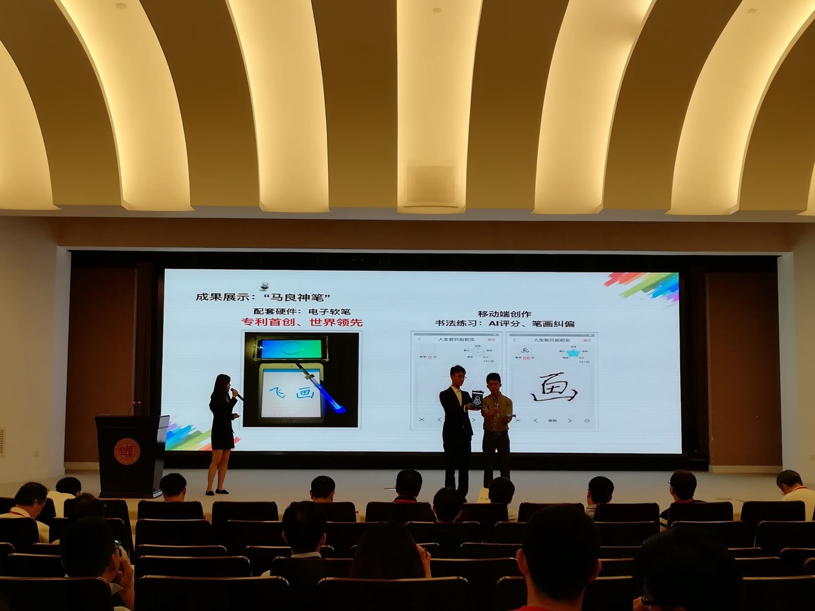 实现无纸化艺术创作的,正是由“飞画”团队独立研发的世界上第一款可以在移动端进行创作的电子软笔——“马良神笔”。根据书法、绘画等匹配有不同的尺寸和规格,可直接点击选择画笔颜色,助力飞画“飞行”。在“飞画”的书法课堂上,老师使用电子软笔将创作的轨迹共享给学生,学生使用电子软笔模仿老师的轨迹。飞画的AI书法老师会根据轨迹的运笔、结构、大小、角度、重心五个方面对学生的字进行打分,并提出改进意见,从而让艺术教学更加趣味、高效。