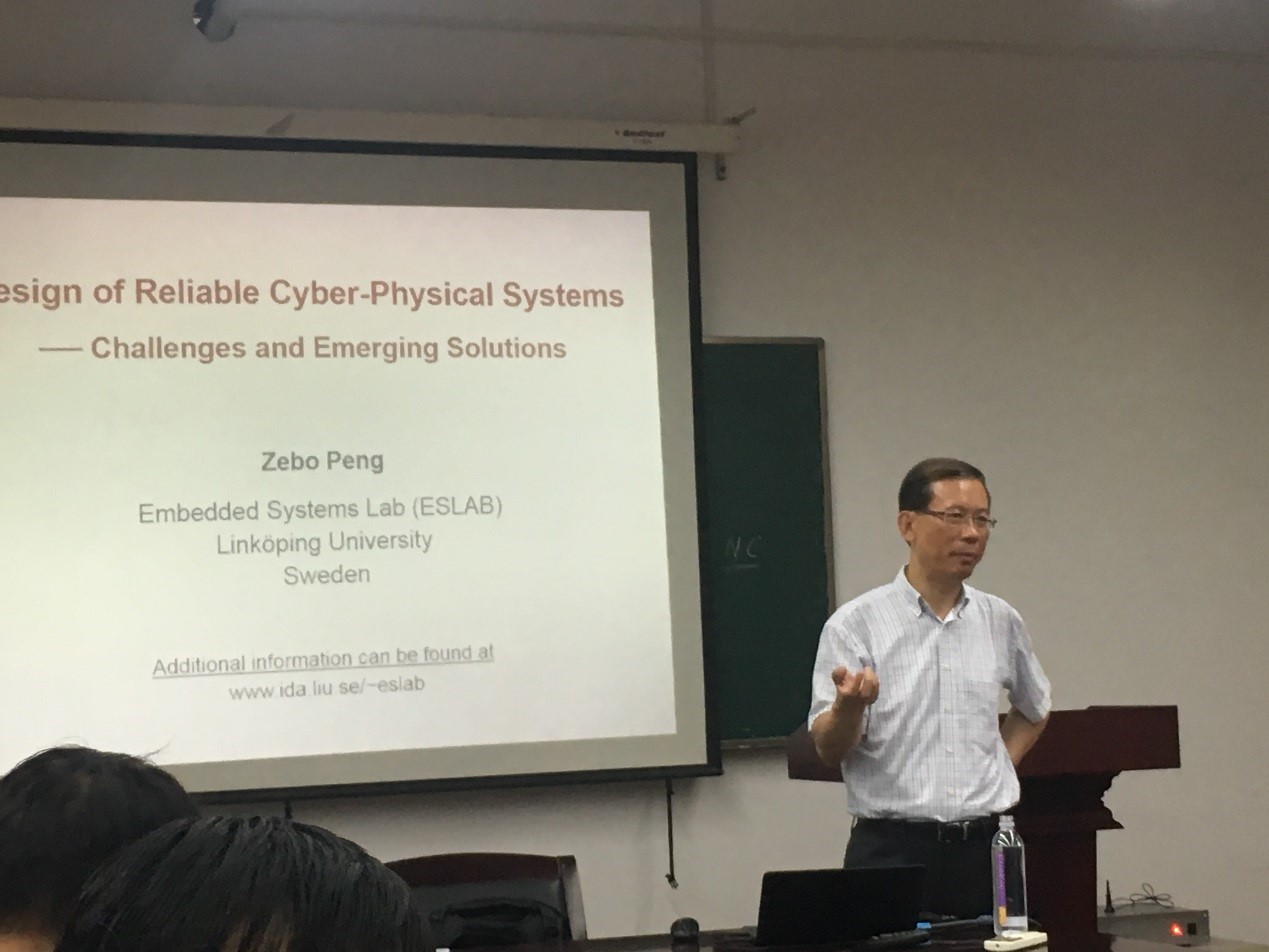 江建慧教授首先向来访人员介绍了我院的基本情况,随后双方就科研、教学,以及学院间后续的交流合作等进行了探讨和交流。会晤结束后, 彭泽波教授在济事楼417教室开展图灵讲座活动,为同学们介绍了汽车Cyber-Physical Systems中存在问题和可行的解决方案。最后,彭泽波教授和学院的青年教师在学术上开展了热烈的讨论。