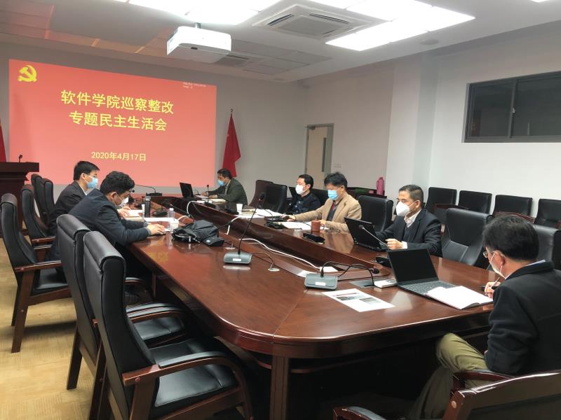 2020年4月17日下午,按照学校党委组织部要求,软件学院召开巡察整改专题民主生活会。学校吕培明副校长、纪委副书记兼审计监察处处长吴利瑞到会指导,院党委书记宋庆国主持会议,全体领导班子成员参加了会议。