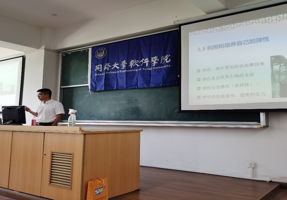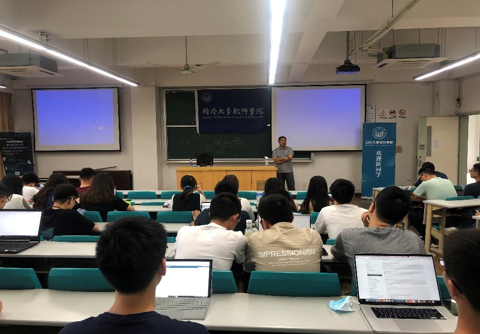 理论素养教育主要围绕习近平新时代中国特色社会主义思想、“四史”、社会主义核心价值观、爱国主义及入党启蒙等内容开展。软件学院党委副书记陈荣为研究生新生进行入党启蒙教育,要求同学们树立正确的人生观、价值观,努力成为一名积极进取的同济人。
