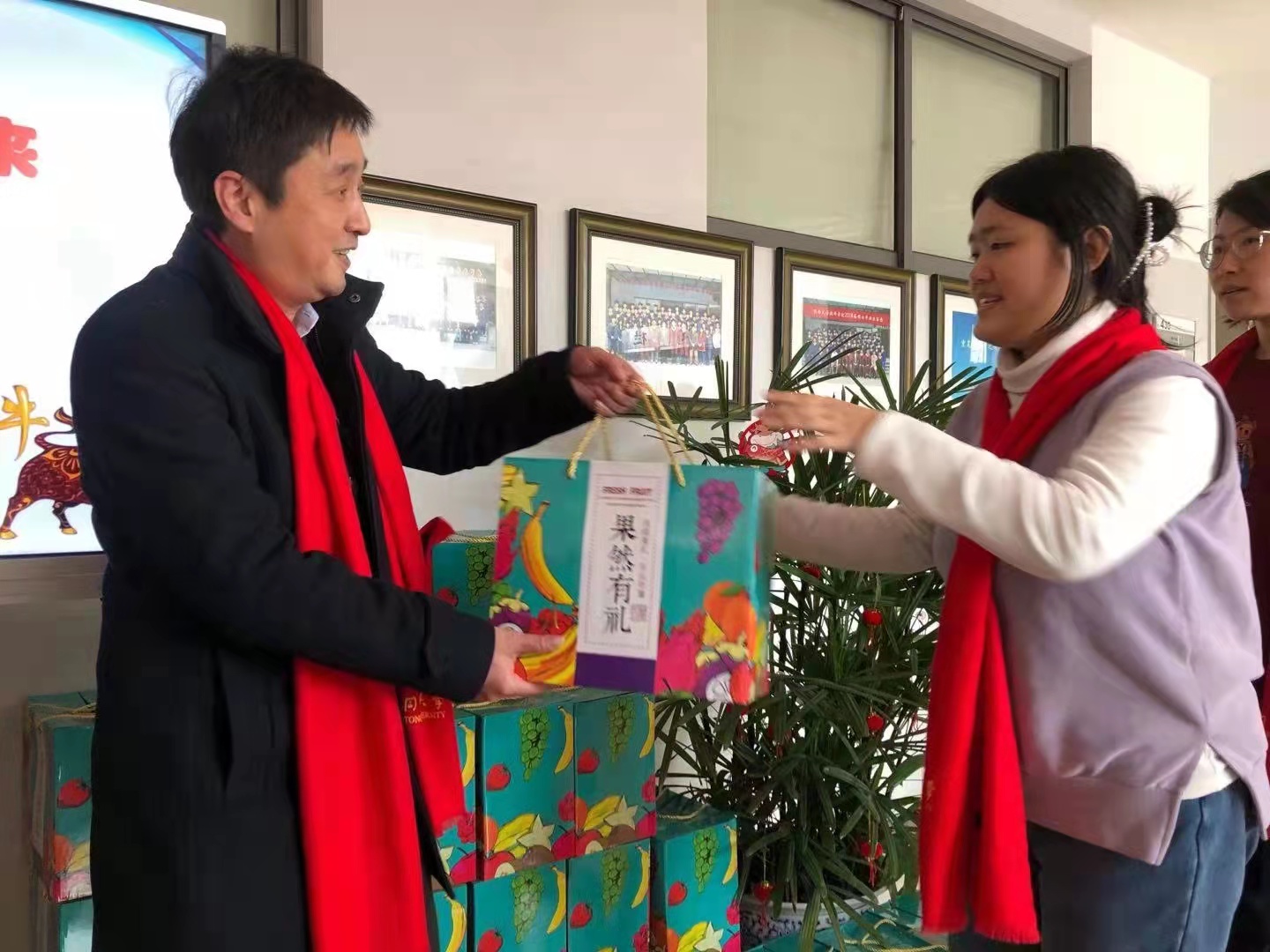 黄翔峰副校长作了热情洋溢的讲话,代表学校祝福同学们新春快乐,并嘱咐大家,一是要严格按照防疫工作有关要求,做好疫情等安全防护工作。二是要过一个有意义、有文化、讲文明而又不失喜庆的别样新年。三是要感恩父母,春节期间要主动和父母、家人、朋友通通电话、聊聊家常、报报平安。最后,黄翔峰副校长、学院领导一起为留校同学分发新年慰问品,并合影留念。