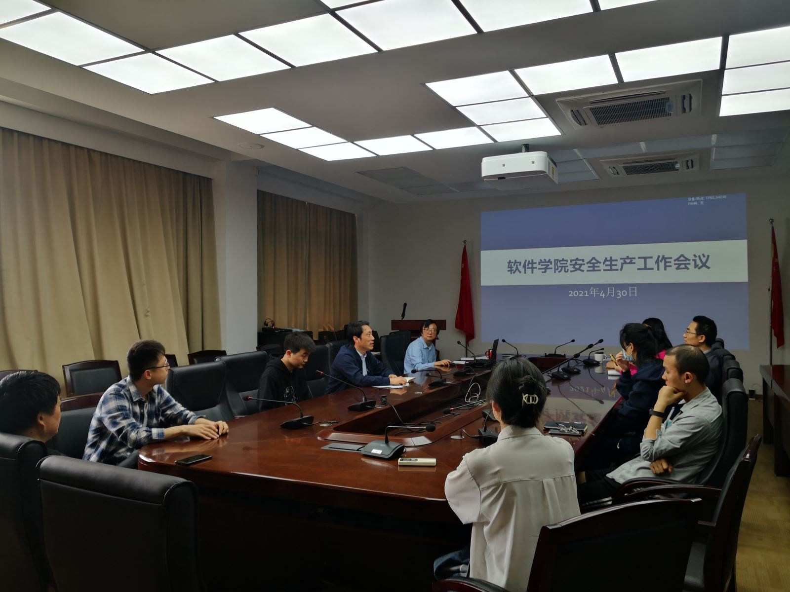4月30日上午,软件学院在济事楼417召开安全生产工作会议。党委书记宋庆国出席并讲话,学院各实验室安全责任人和安全员参加会议,会议由学院安全员张晶主持。