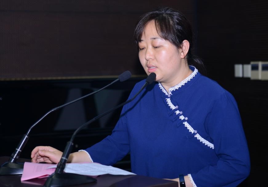 教师代表沈莹老师上台发言,表达了对学生成长历程的欣慰和对他们未来发展的期望。