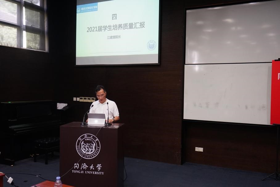 江建慧院长代表学院向与会嘉宾及毕业生汇报了软件学院2021届毕业生培养质量,并向全体毕业生表达了祝福。