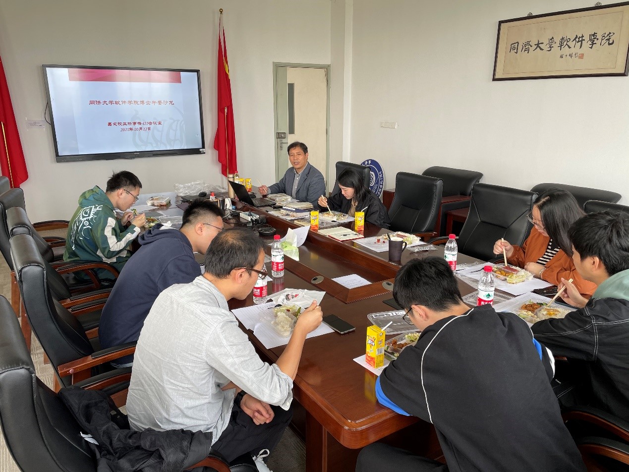 2021年10月22日中午,软件学院于济事楼455会议室,举办博士生午餐沙龙。软件学院党委副书记陈荣,辅导员焦嘉欣、陈璞皎和7名博士生参加活动。