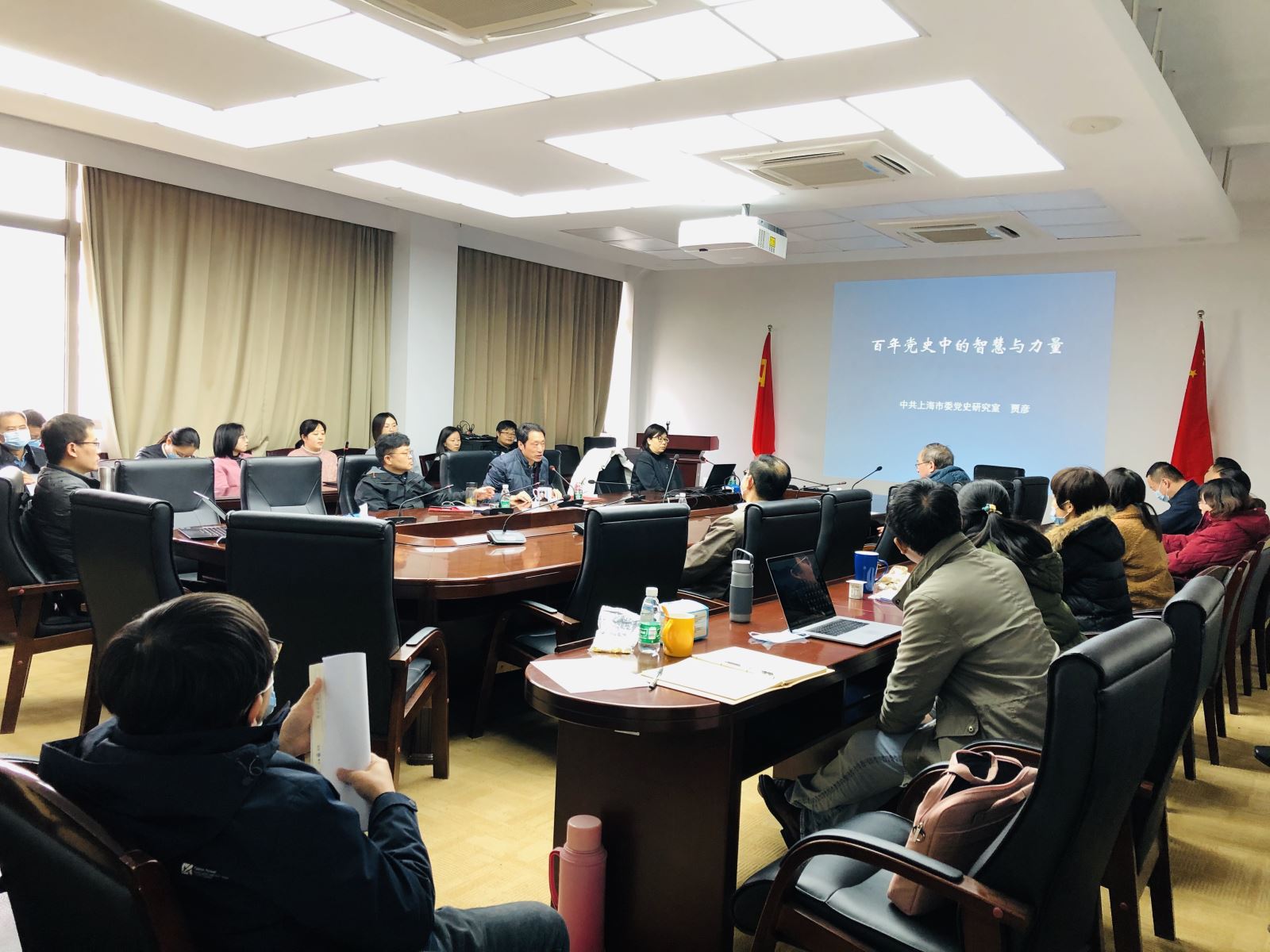 为进一步深入学习贯彻《中共中央关于党的百年奋斗重大成就和历史经验的决议》精神,引导全体教职工学史明理,学史增信,学史崇德,学史力行,从百年党史中汲取智慧和力量,2021年12月14日下午,学院党委邀请中共上海市委党史研究室征编处处长、《上海党史与党建》副总编贾彦为全院党政班子成员及教职工作题为《百年党史中的智慧与力量》的报告。报告会由软件学院党委书记宋庆国同志主持。