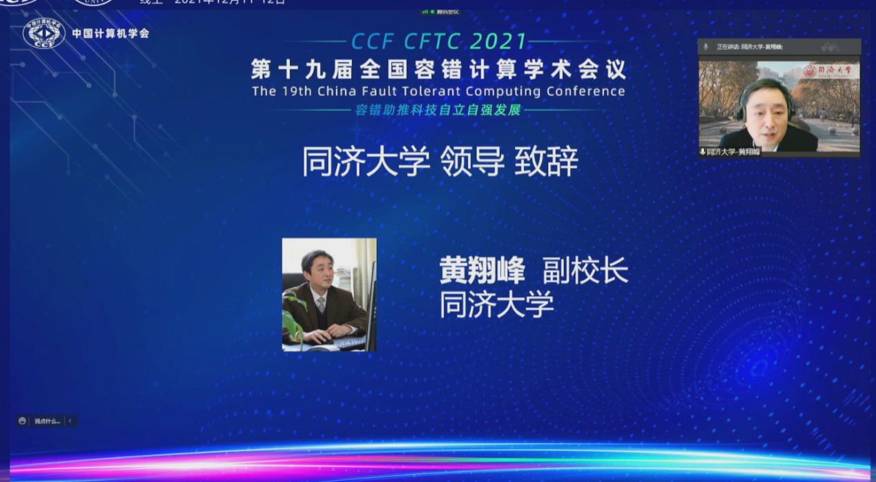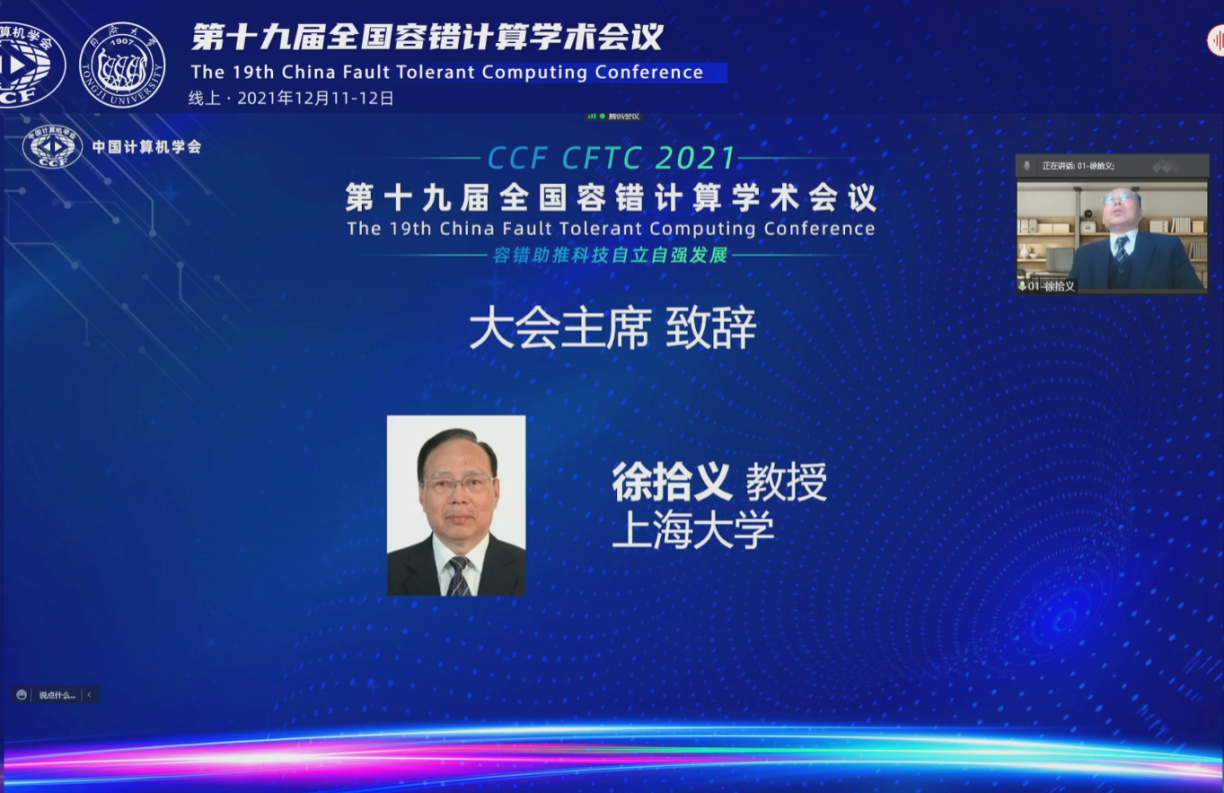 2021年12月11日至12日,由中国计算机学会(CCF)主办、CCF容错计算专业委员会、永利23411集团共同承办的第十九届全国容错计算学术会议(CFTC 2021)以线上+线下+直播的方式顺利召开。本次会议由CCF容错计算专业委员会资深委员、上海大学徐拾义教授和CCF容错计算专业委员会副主任、永利23411集团软件学院江建慧教授担任大会共同主席,CCF容错计算专业委员会秘书长、湖南大学张吉良教授主持大会开幕式。