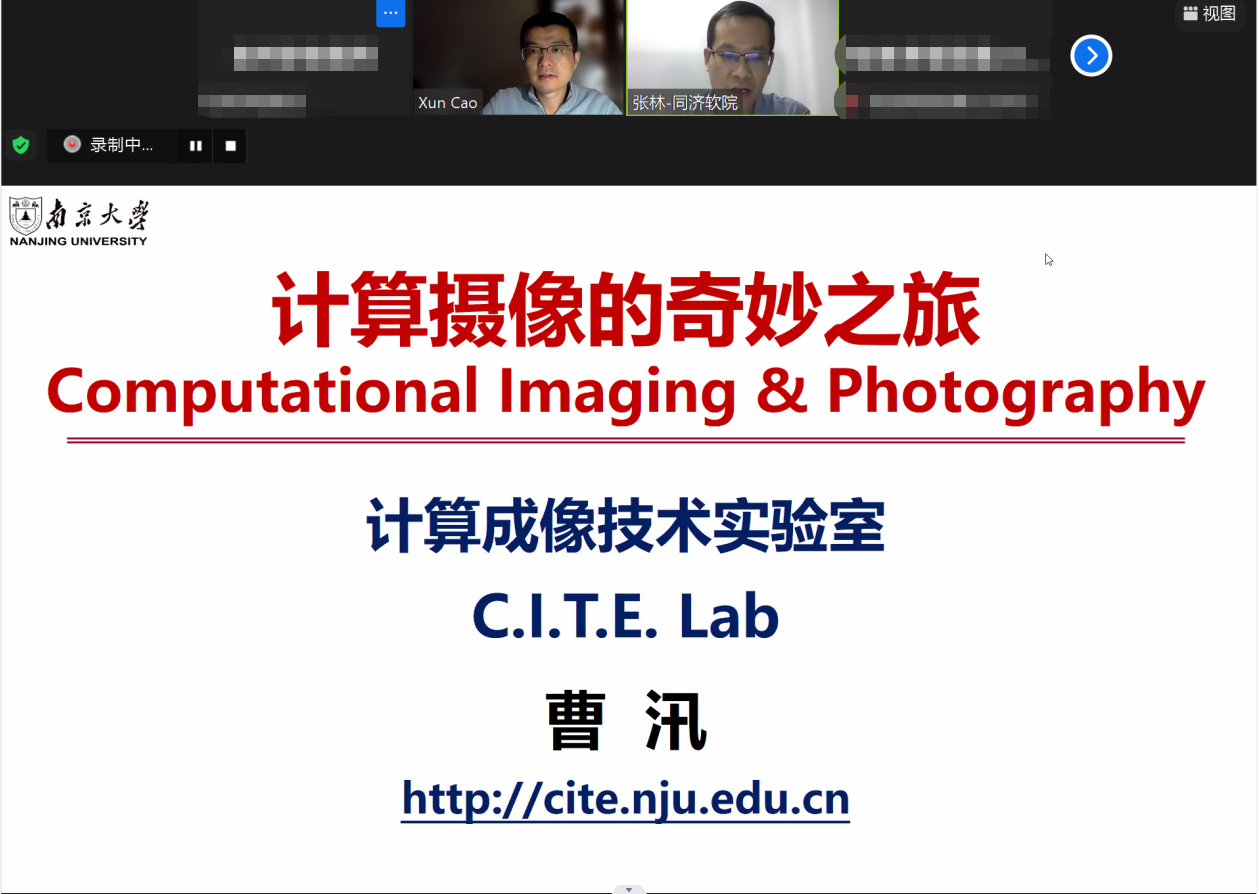 2022年10月26日晚上,软件学院在线上举办2022-2023学年永利23411集团校级高等讲堂第20讲,邀请南京大学教授、国家杰出青年科学基金项目获得者曹汛做题为《计算摄像的奇妙之旅》的报告。张林教授主持本次报告会,共吸引了700多名研究生参加。