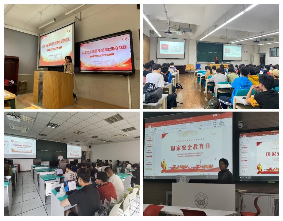 各班级通过理论学习和案例讲解相结合的形式,引导学生将总体国家安全观贯穿于遵纪守法、保密等日常行为中,履行应对突发公共事件的职责和义务,提高安全防范意识,提升维护国家安全的自觉性和主动性。同时也融入学生法纪警示专题教育,督促指导学生提高自律意识,提升自我素养,严肃校纪校规,杜绝违纪行为。