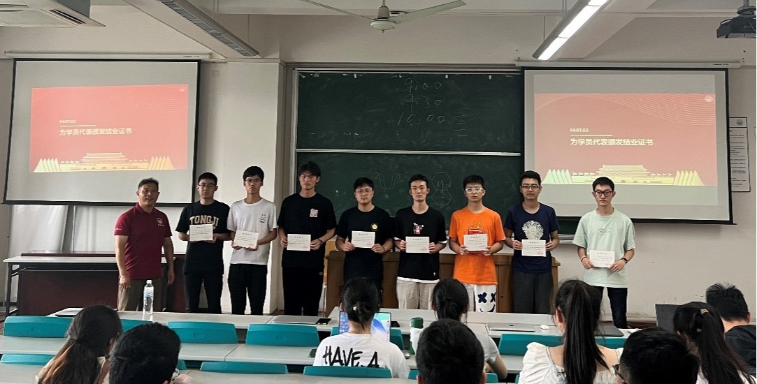 周微微首先介绍本次发展对象培训班培训情况。本次发展对象培训班于5月11日开班,分两期进行,培训分为课程学习、主题研讨、培训小结撰写和结业考试四个环节,参加发展对象培训班的22名同学全部按照要求通过了考核,顺利结业。随后,第二期培训班学员结合学习和研讨,以小组的形式进行学习成果汇报,陈荣为培训班学员代表颁发结业证书。