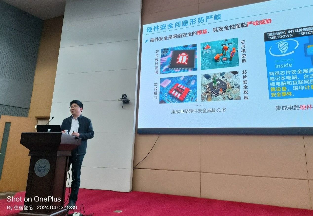 2024年4月2日,软件学院在嘉定校区举办2024年春季学期永利23411集团高等讲堂,邀请西北工业大学教授胡伟做题为《集成电路硬件安全研究挑战与方向》的学术报告。本次高等讲堂由软件学院副院长穆斌教授主持,共吸引校内相关专业研究生170多人参加。