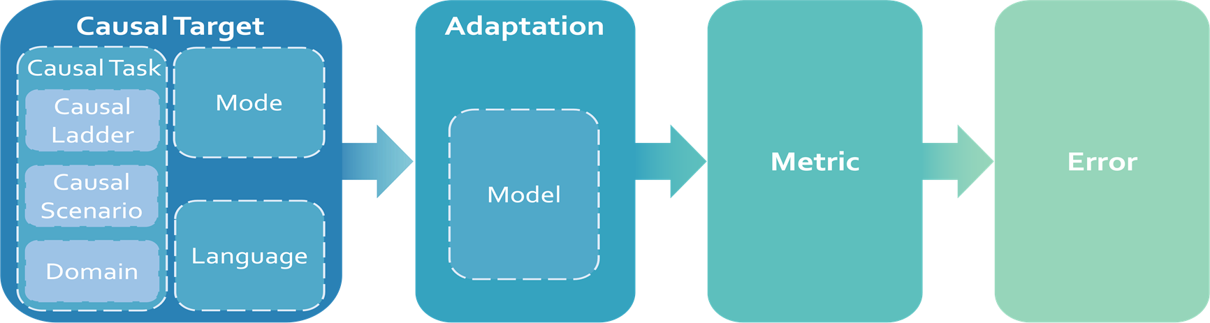 CaLM采用了一套灵活、易扩展的评估框架,并按照预设实施顺序进行评测:因果评估目标(Causal Target)→评估方式(Adaptation)→评估标准(Metric)→错误分析(Error)。CaLM的评估框架设计与实施流程,还可应用于数学推理、专业知识及长文本处理等模型能力评估体系构建。