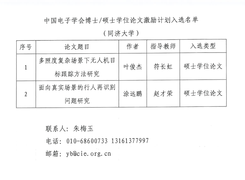 近日,2023年度中国电子学会优秀博士/硕士学位论文评选结果正式公布,我系计算机科学与技术专业硕士毕业生涂远鹏的学位论文《面向真实场景的行人再识别问题研究》入选中国电子学会硕士学位论文激励计划(中国电子学会优秀硕士论文),导师为赵才荣教授。