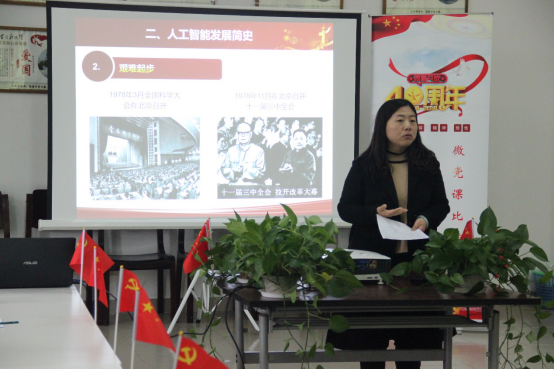 微党课比赛中,来自硕博12个小组的36名党员同学经过前期的精心选题和认真备课,分别围绕经济发展、文化强国、社会变革、中国与世界等主题,用真实生动的事例、精致的PPT课件,从不同的角度展示了国家改革开放40年来翻天覆地的变化。比赛邀请到我院党委副书记董变林老师、计算机联合党总支副书记张砚秋老师和马克思主义学院优秀青年教师姚莉萍老师任评委,同时在社区内做广泛宣传,邀请社区同学参与观看。