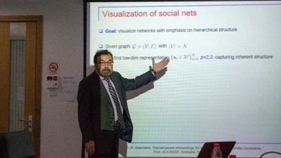 10月20日,应我系刘庆文、夏鹏飞教授邀请,无线通信网络与信号统计处理领域国际著名专家、美国明尼苏达大学Georgios Giannakis教授在智信馆403室作了题为“Inference and Learning over Large-Scale Social Networks”的学术报告,这也是计算机科学与技术系智信讲坛第113期内容。